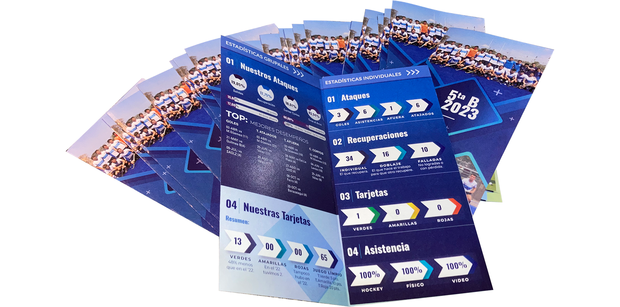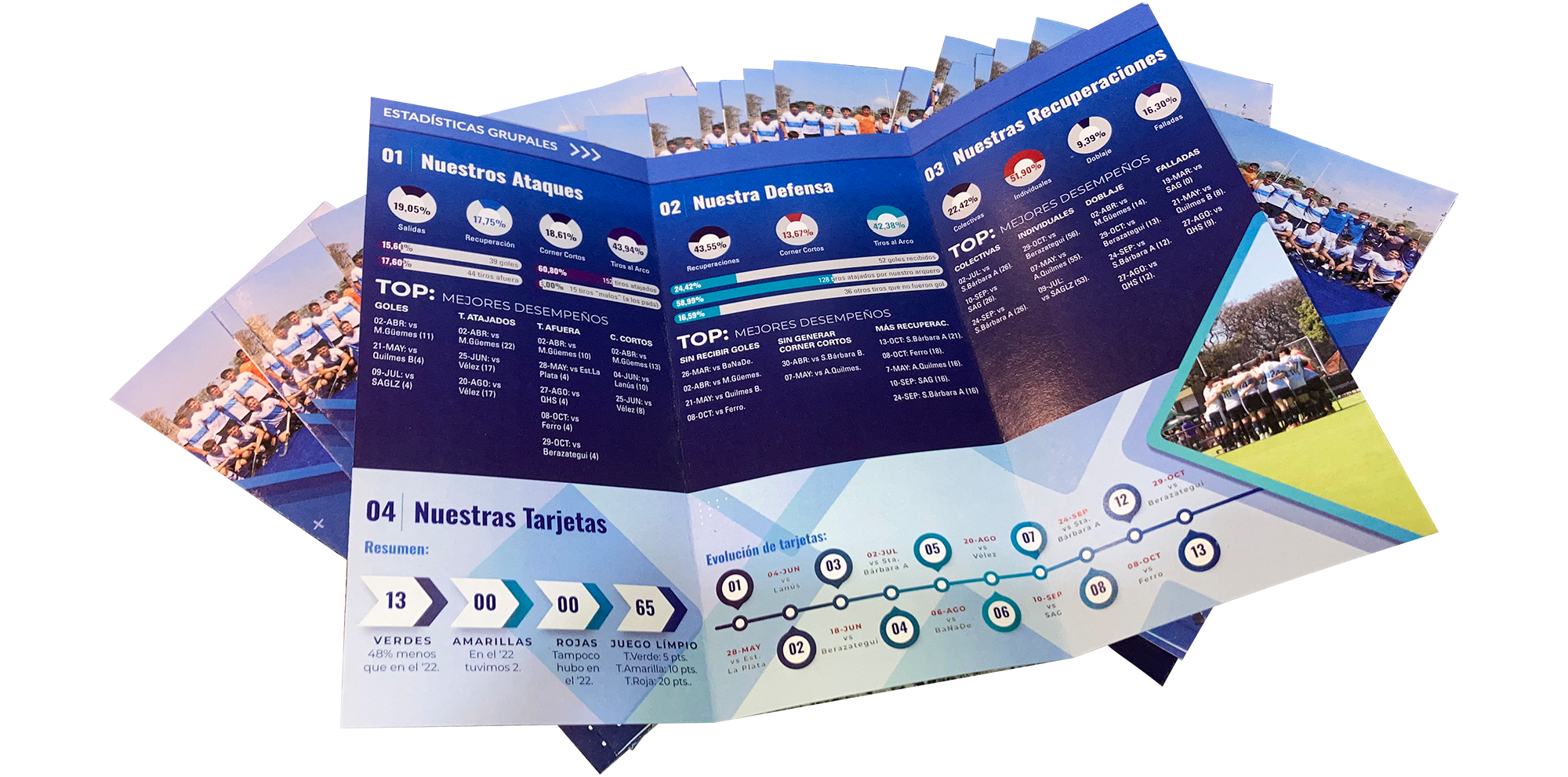 En el interior se encuentra el resumen de los logros colectivos del equipo y en la solapa las estadísticas individuales. En la contratapa se deja un espacio para que cada jugador haga su propia crítica y autoevaluación del año y setee objetivos para el año siguiente y acciones para poder cumplirlos.