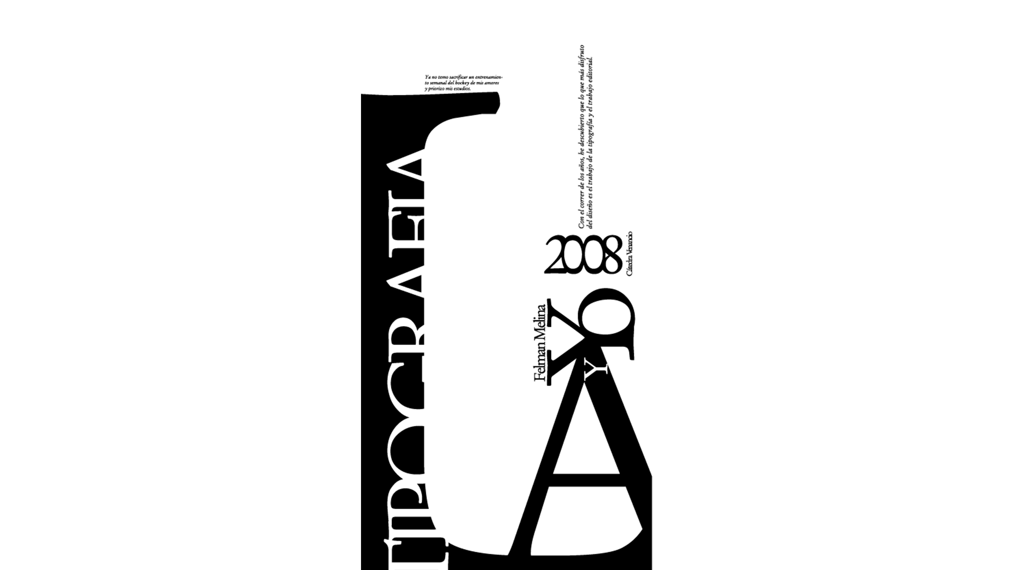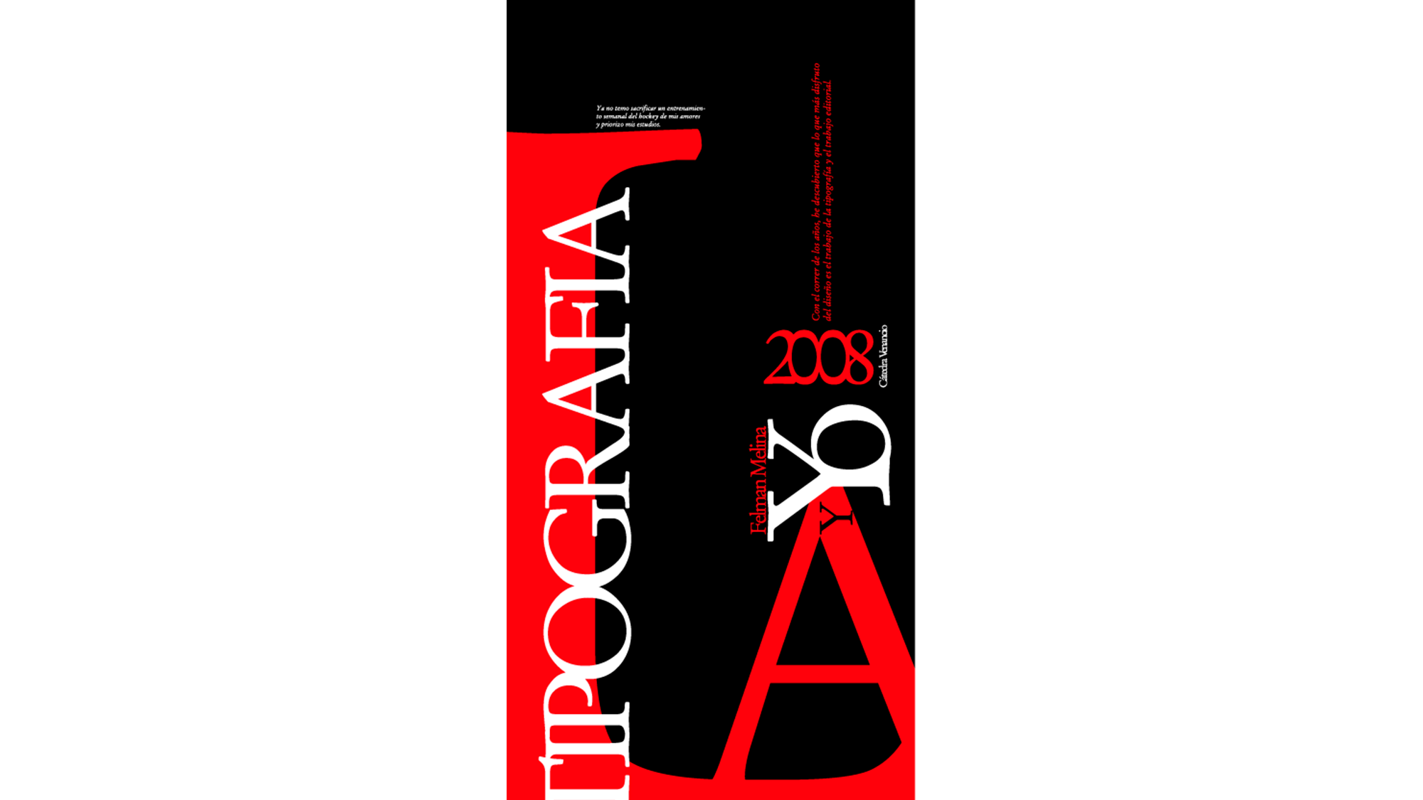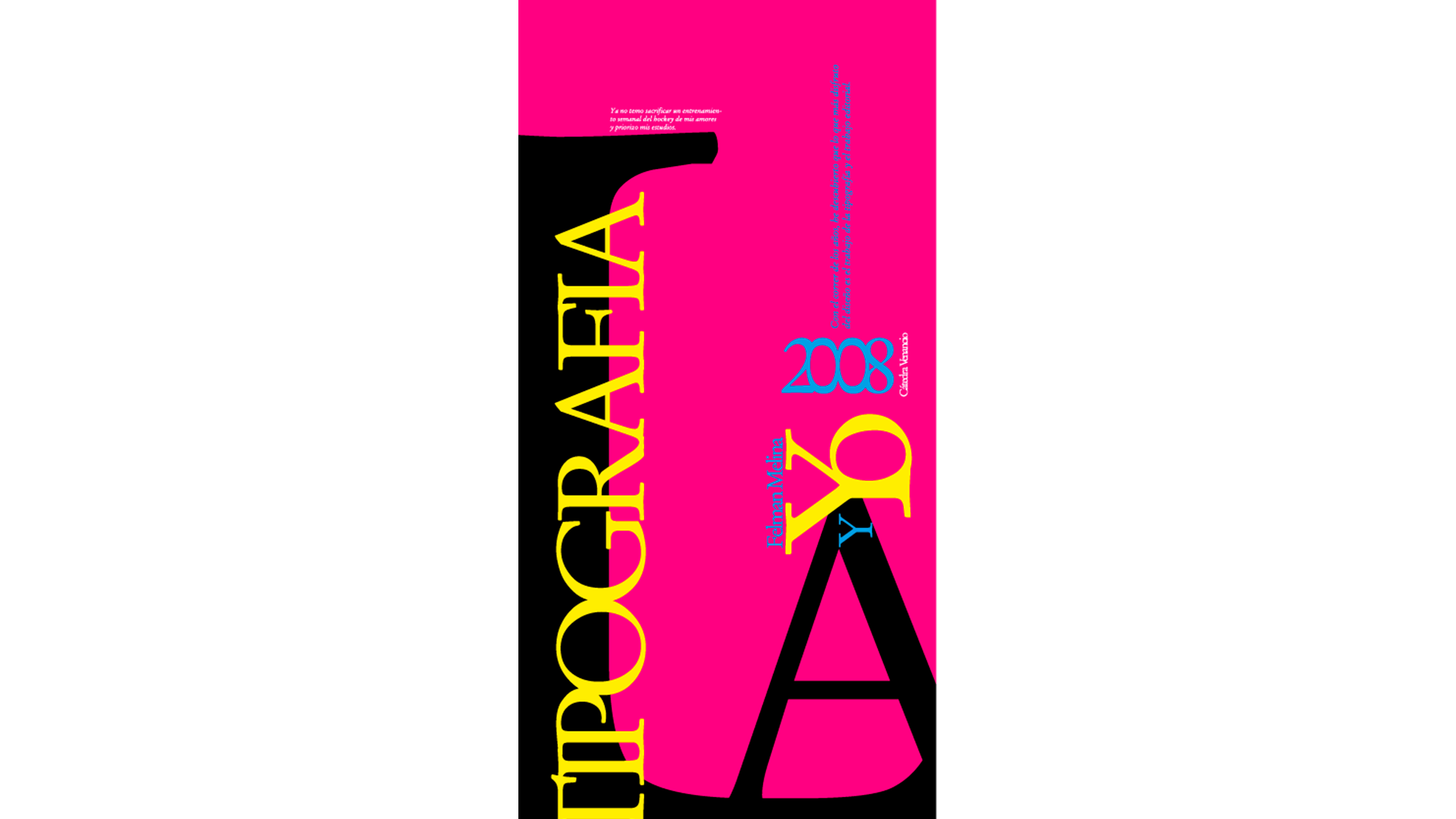 Trabajo tipográfico con el objetivo principal de trabajar distintos niveles de información en sus distintos niveles de lectura. A través del contenido debíamos presentarnos a la clase, generando 3 piezas, una en Blanco y Negro, otra agregando el color rojo y la última en Cian, Magenta, Amarillo y Negro (todos colores plenos).
