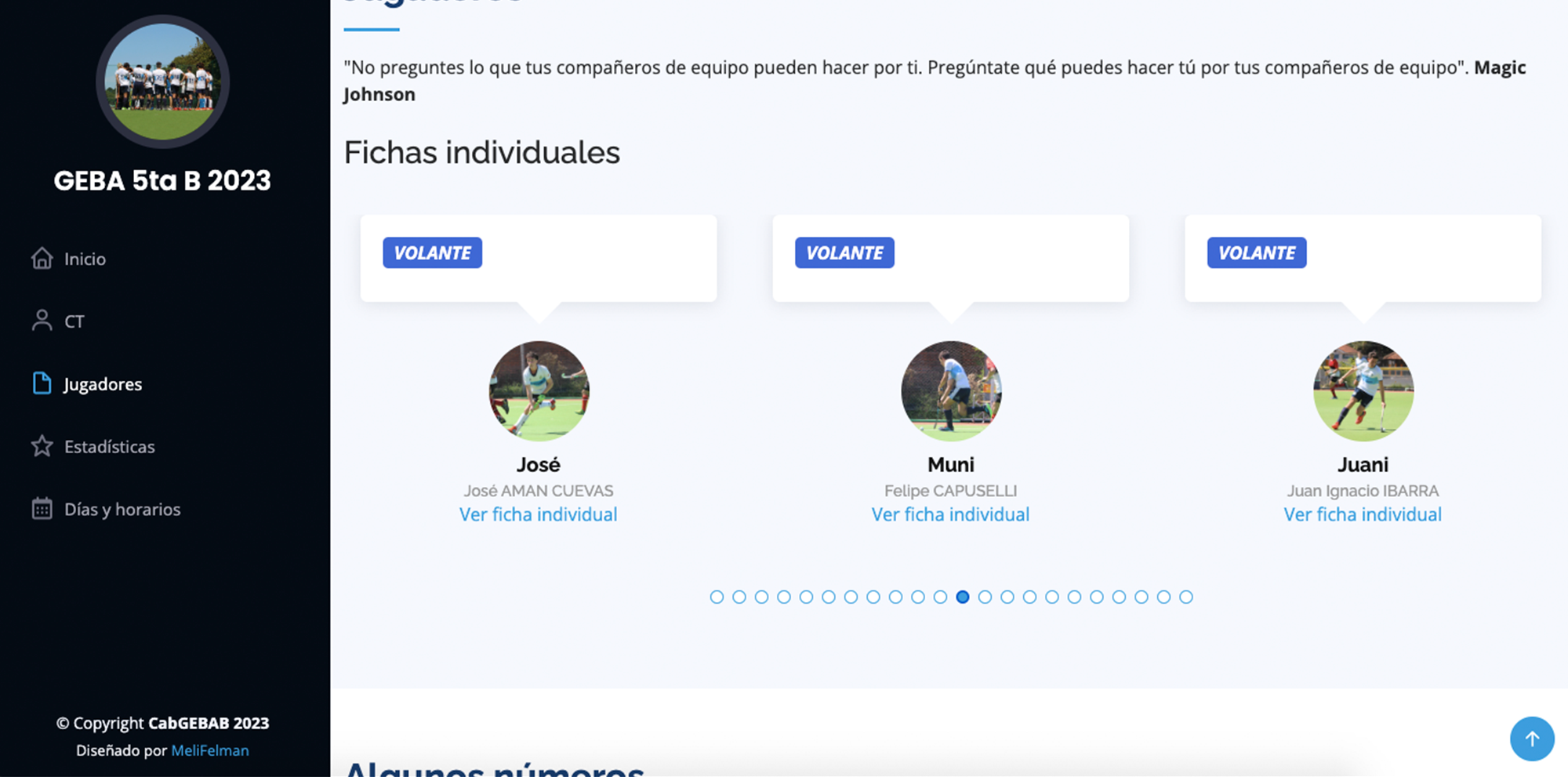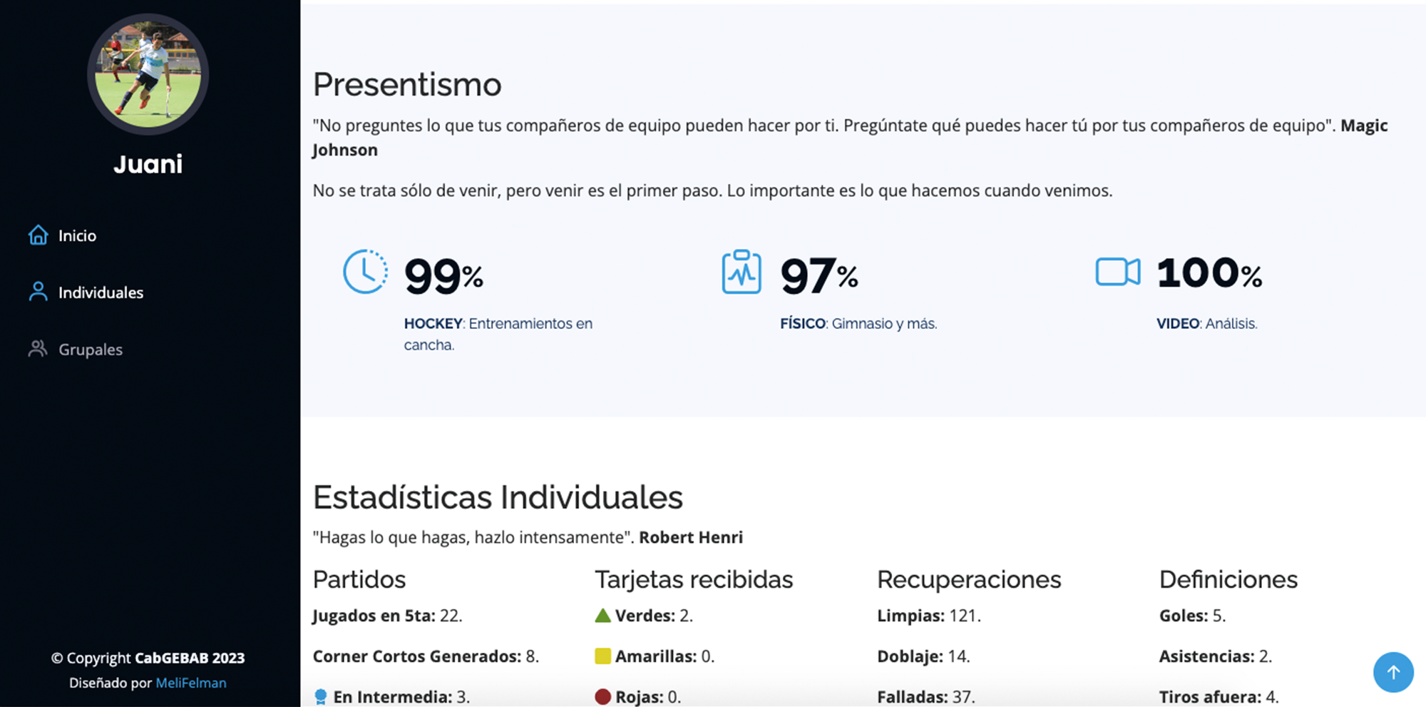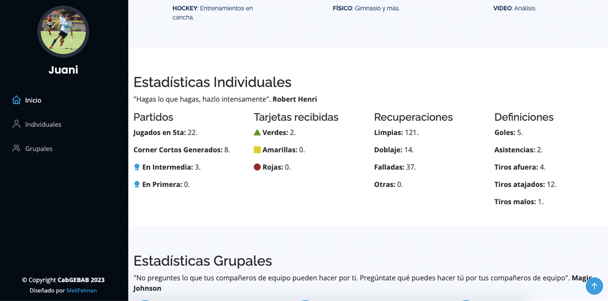 Sitio para fácil seguimiento de las estadísticas y otros datos grupales e individuales del equipo.