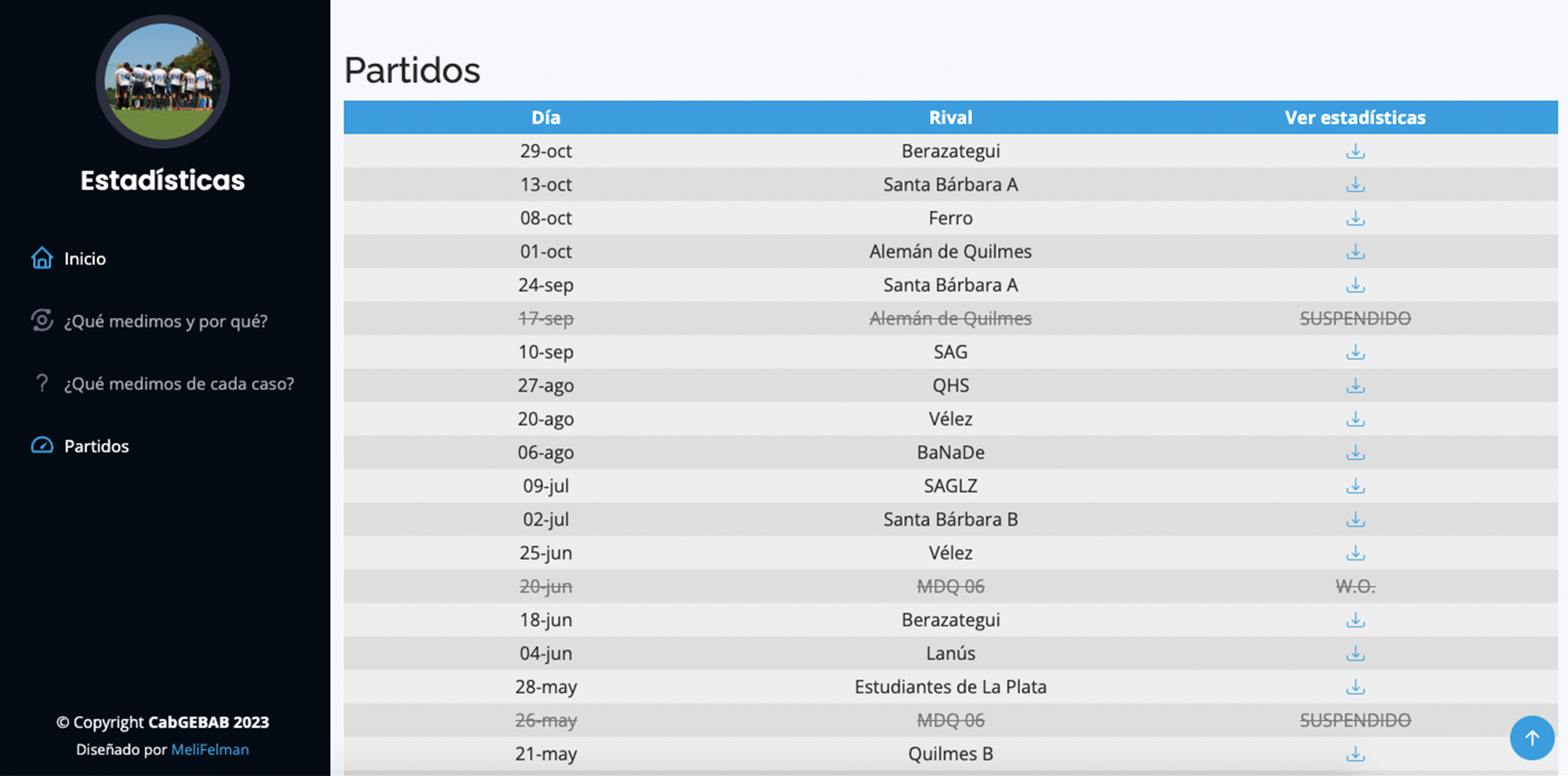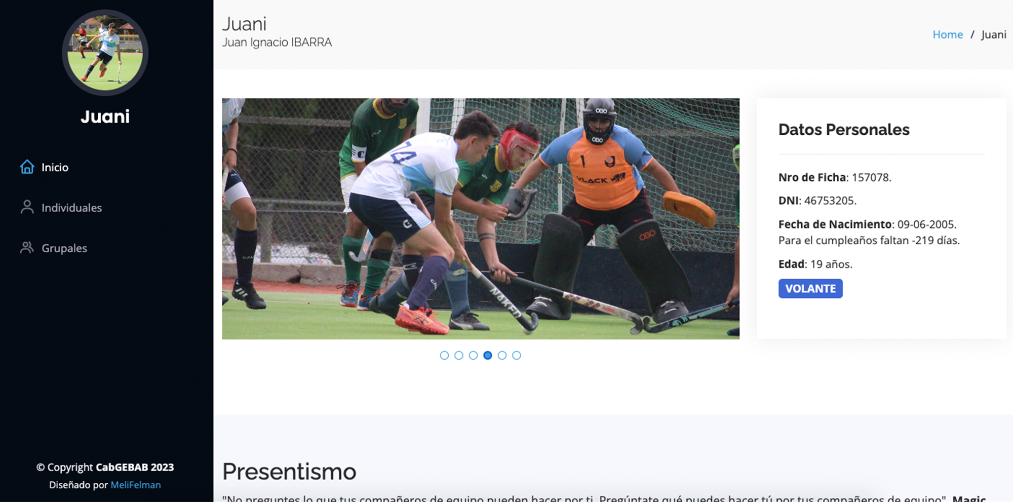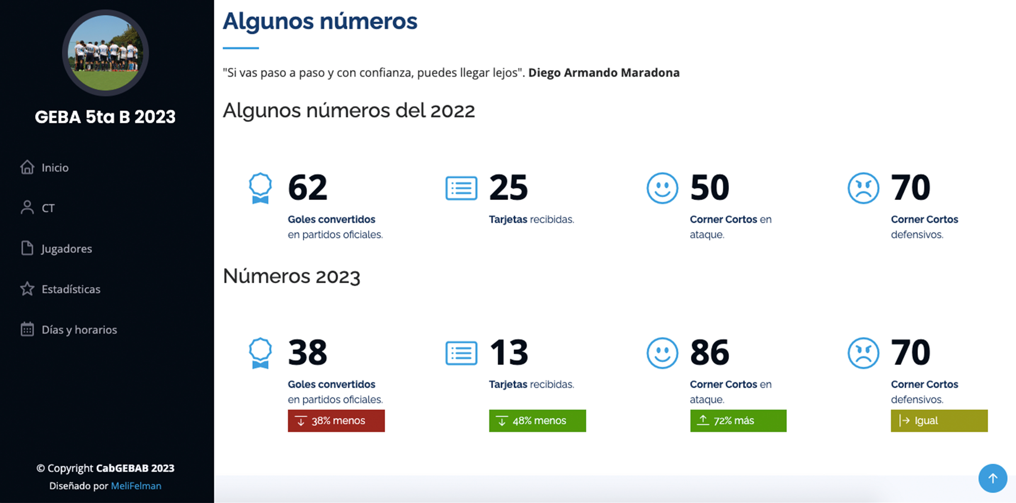 Sitio para fácil seguimiento de las estadísticas y otros datos grupales e individuales del equipo.