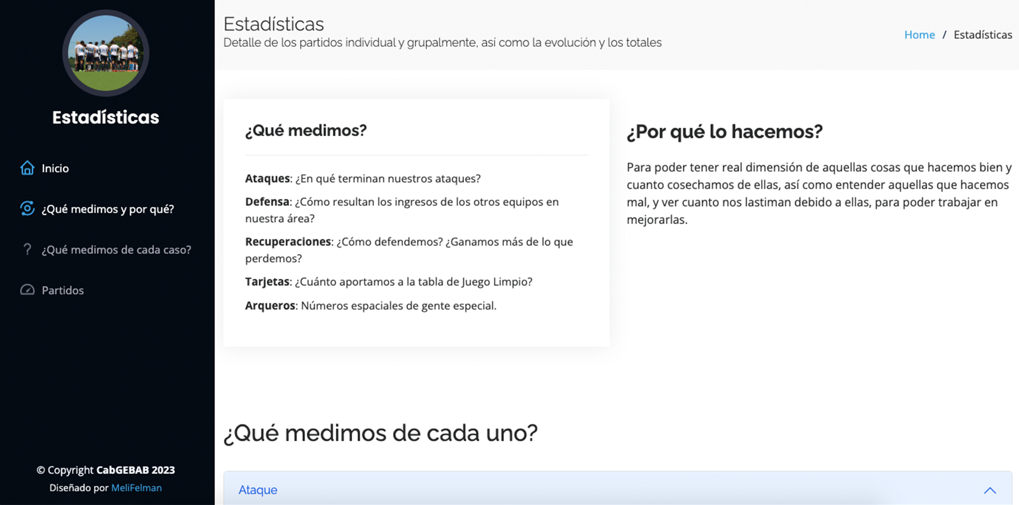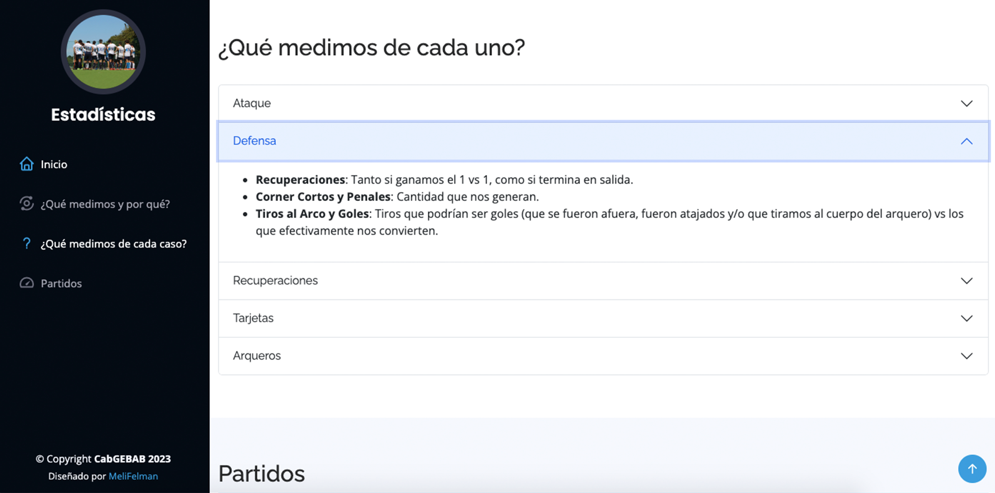 Las estadísticas eran tomadas en todos los partidos del año, tanto colectivas (incluyendo en que resultan nuestros nuestros ingresos al área en ataque y como resolvemos los ingresos del rival) como individuales (también en defensa y ataque, y un apartado específico para los arqueros).