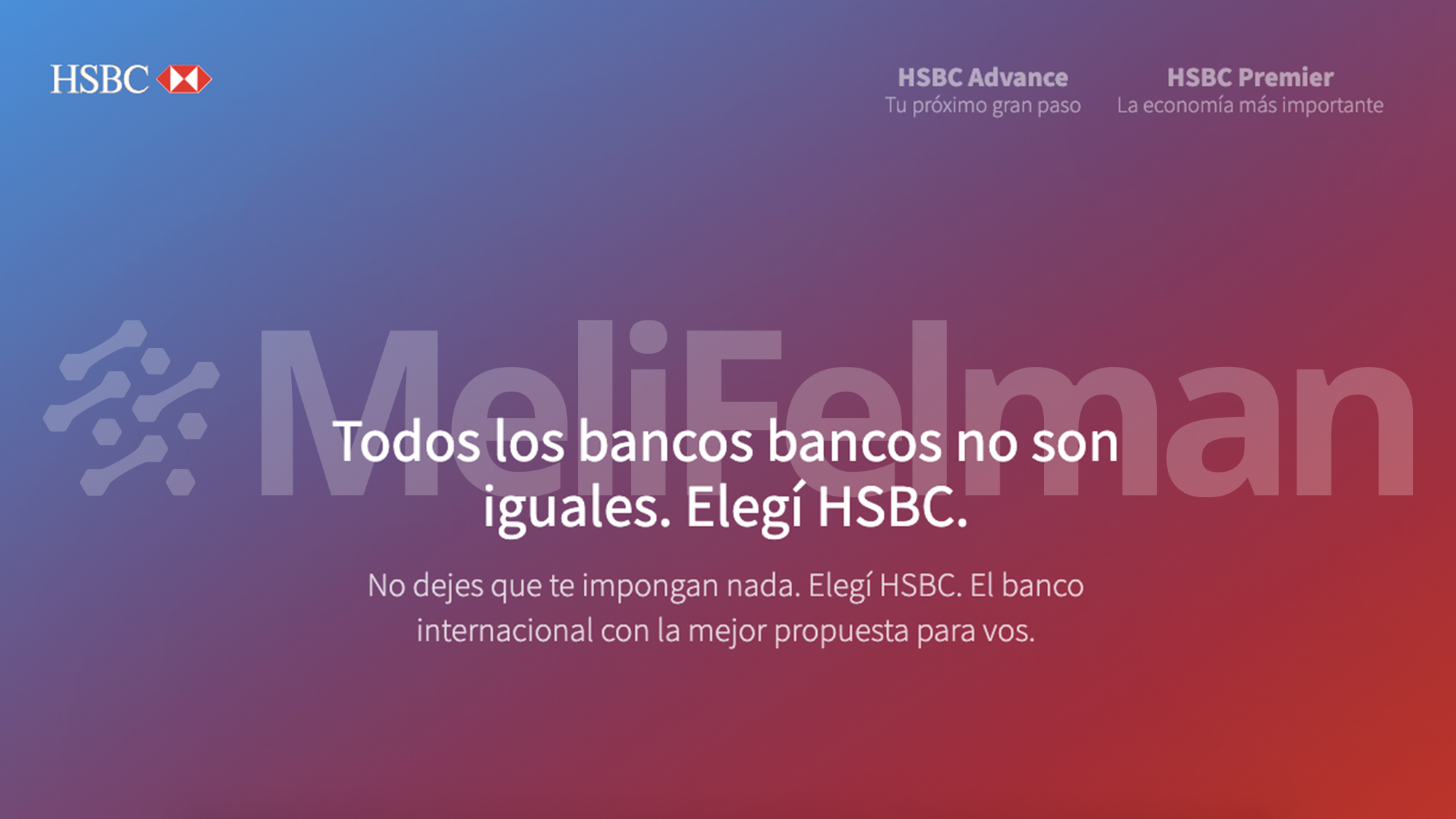 Diseño de un sitio para la captación de clientes premium, en el contexto de la salida del Citybank del país. Se analizaron las piezas a las que estaban acostumbrados los clientes del Citybank, sus características personales y sus preferencias, destacando principalmente esos atributos en donde el HSBC se parece al Citybank y se diferencia del Santander (banco comprador).
